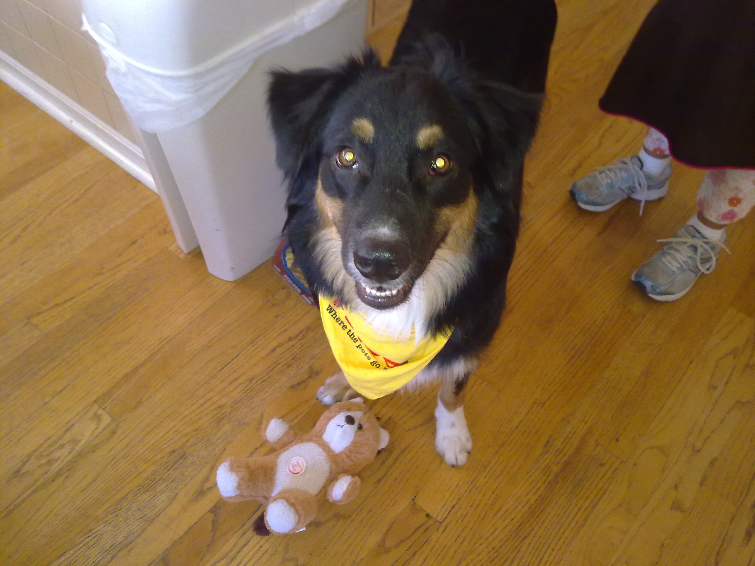 So this new dog we got is cute as can be, clever and sweet. We let him hang out in the backyard tied up so he can’t get loose. He LOVEs it. Well, apparently something got his attention and he got loose. My husband runs upstairs to tell me he can’t find the dog. I am like…What??? How in the hell do you lose a dog. So, I dressed and started the venture around the neighborhood looking for this frigging dog wondering how I am going to explain to the kids that our new family member is GONE!! When I get back home, my husband is on the phone. He has decided to call 911!! WTF? I really thought he was insane. Here is the kicker. I actually drove to the police station because animal control reportedly picked up a black medium sized dog. Animal control specialist Jason had my Monty in his van…..or should I say…..prison. When he opened the van doors, Monty wouldn’t even look at me. He KNEW he was in trouble. So, thanks to the many neighbors who called the police and the man down the street who kept him in the backyard for a bit….we are very very very lucky to still have Monty. BAD DOG MONTY!!!