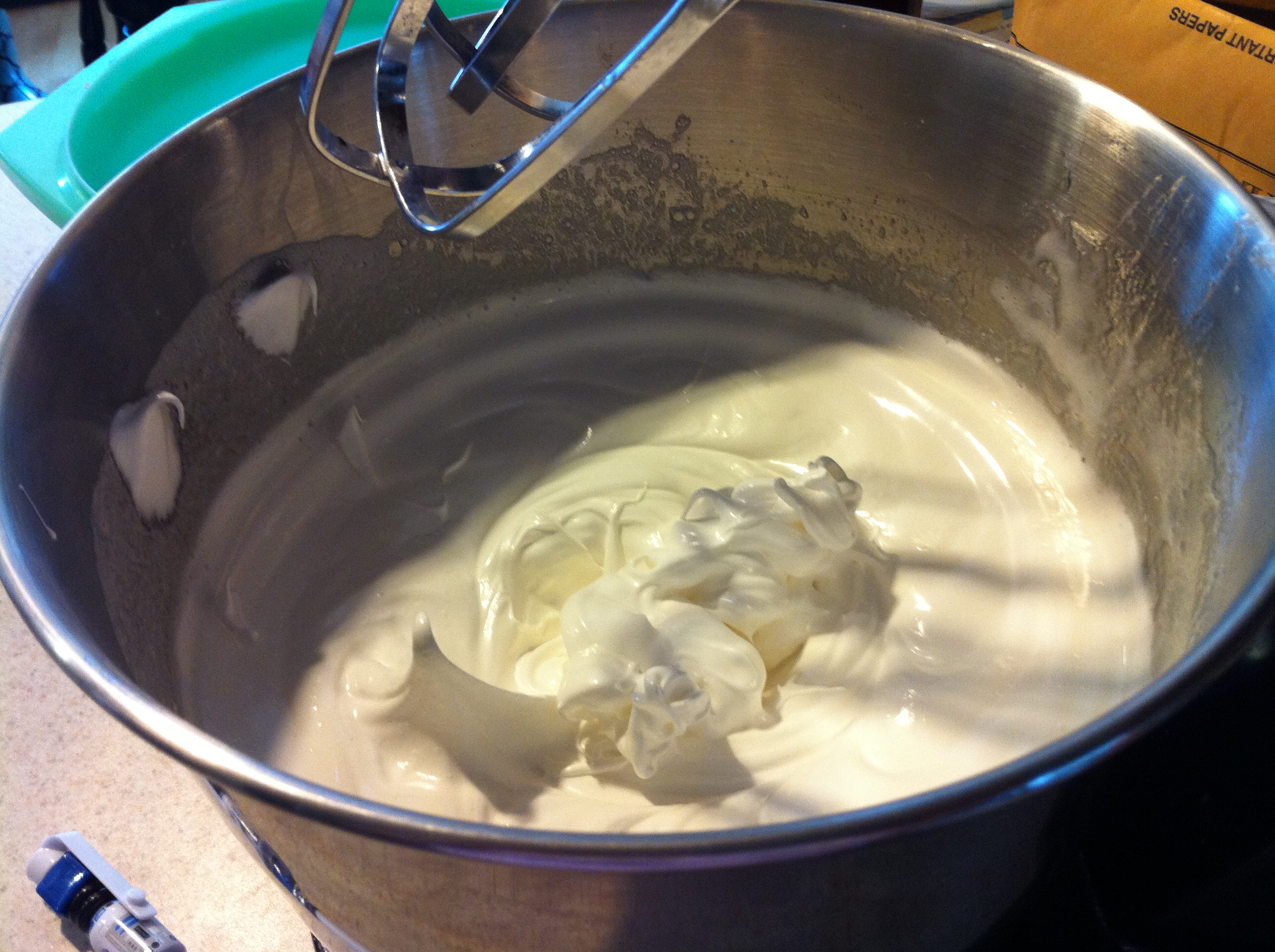 I had my newly purchased whisk attachment for the mixer which helped a great deal. I also found a weight to volume conversion chart to help with ¼ or ½ ing a recipe.