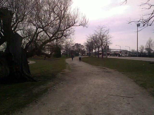 I am here to tell you that nine miles is a long way. The run started out like all of the others except that my ipod was doing this strange skipping thing which made me half insane. The only thing I could think of during the whole run was how happy I was going to be to get back home and have a bloody, beer, coffee, and or mimosa. Maybe one or two of each. We started at our normal spot and headed up north on through the park and over to the lakefront path. The morning wasn’t that bad really, a little windy with a bit of a chill, but not too bad. I think we were all a little nervous about how long it was going to take and how FAR it really is. I kept my bus pass in my water bottle holder just in case. You just never know when you are going to finally have enough. We went at a 4:2 pace. That worked very well for me in the youthful miles, but as they started to creep up, just after Cricket Hill past Montrose I about died I was thrilled when K said we’d bring the pace back to a 3:2. By mile 8.5 I was struggling. I was doing anything to avoid running. I took some shots of the cloudy morning just north of downtown.
