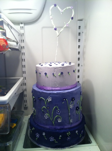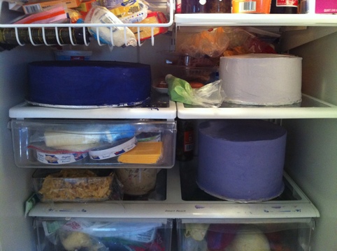 Are you kidding me. The day is upon me. Today I looked around the house for all of hte little pieces of everything that I need for tomorrow….cake boards, icing tips, color gels, everything. The flowers arrived, the topping is done and I like an insane person tried to make a new filling for the cake. I followed the recipe and I clearly can’t make fudgy wonderful chocolate filling. It tastes good, but has the texture of…hmmmm….sand. So, wish me luck tomorrow. We’ll see how it goes!!!